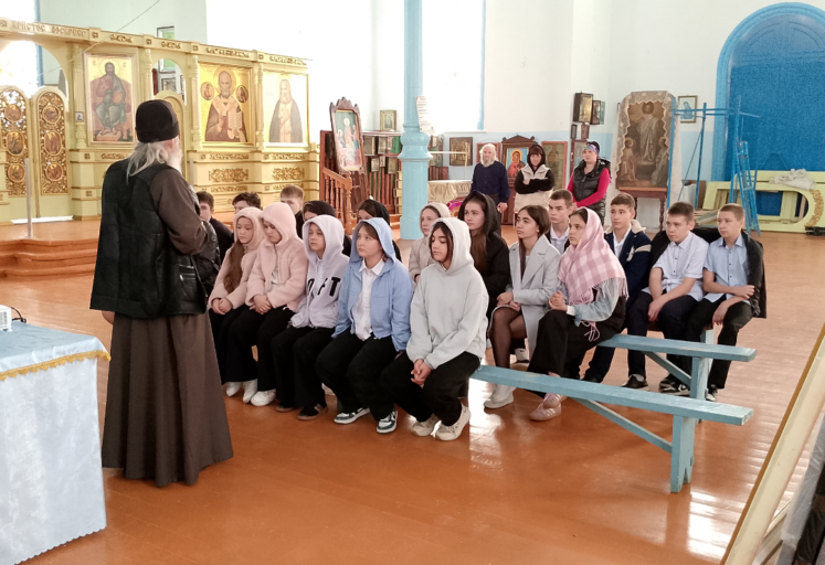 Настоятель рассказал детям не только историю храма, но и том какие работы уже сделаны благодаря грантам губернатора Кубани, и какие еще предстоит сделать, чтобы храм приобрел свой первозданный вид. Также детей интересовало, была ли роспись в храме, и куда она делась, и есть ли старинные иконы, некоторые дети обращались с личными вопросами, и на все заданные вопросы учащиеся получили по возможности исчерпывающие ответы. В нашей стране сейчас многое изменяется в лучшую сторону, но и многое еще предстоит сделать, чтобы Россия выстояла в трудной борьбе за свою идентичность, за свою самобытность, сохранив свои традиционные нравственные ценности и свою многонациональную культуру, многое зависит от людей и, конечно, подрастающего поколения. Если оно будет знать свою историю и любить свою Родину, то сможет понести дальше в мир исторически предопределенную ей Богом миссию — быть хранительницей нравственности и правды Божией во Вселенной. А наши храмы станут, как и было раньше, местом горячих молитв и проповеди Благовестия Божия не только нашему народу, но и всем людям доброй воли во всем мире.